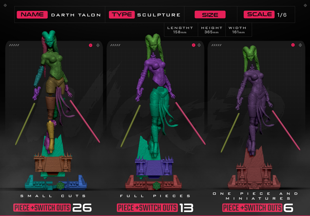 Darth Talon Sculpture 1/6 Scale STL FILES Pre - Supported for 1/6 scale and 1/12 scale