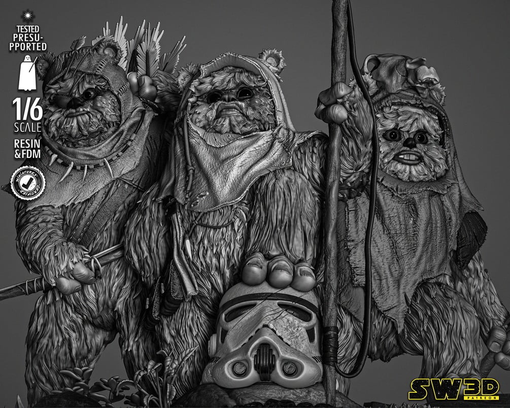 Ewoks Diorama Sculpture 1/6 Scale STL FILES Pre - Supported for 1/6 scale and 1/12 scale