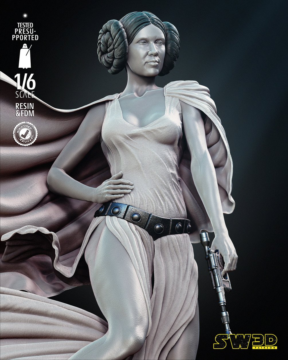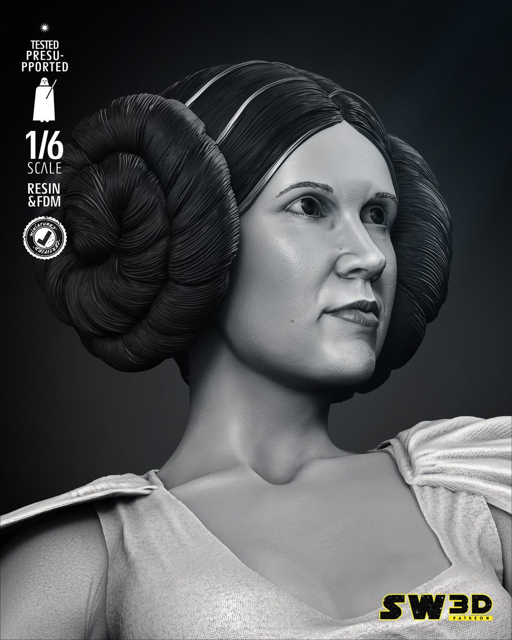 New Hope Leia Sculpture 1/6 Scale STL FILES pre - supported for 1/6 scale and 1/12 scale