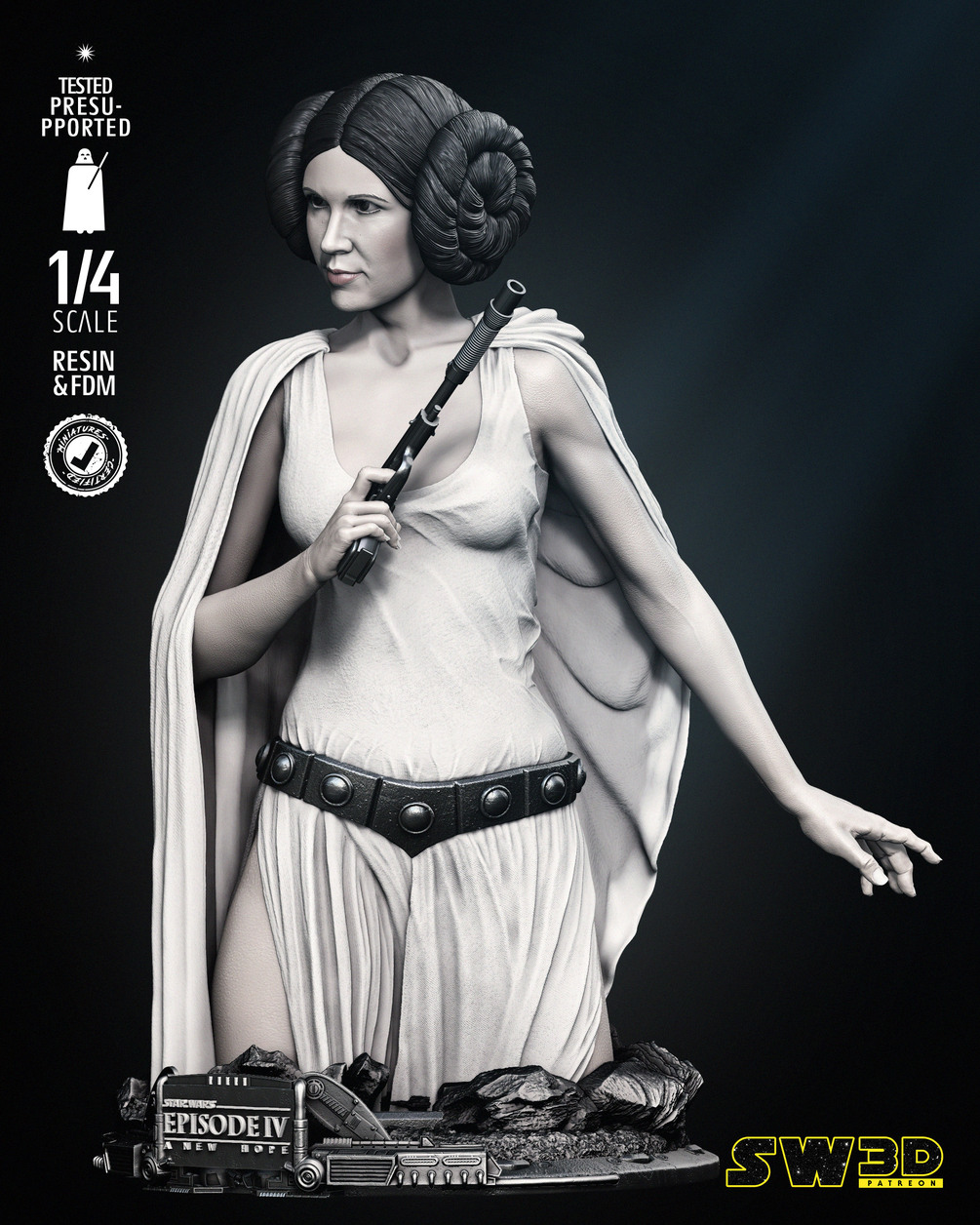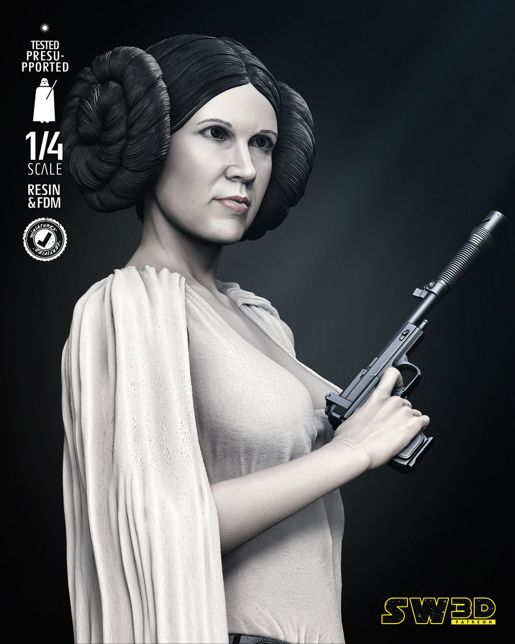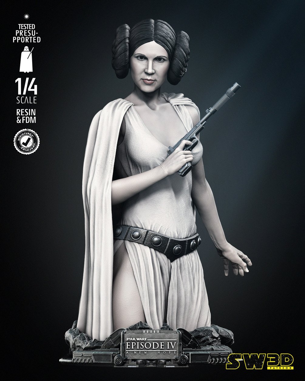 New Hope Leia Bust 1/4 Scale STL tested and ready for 3D printing.