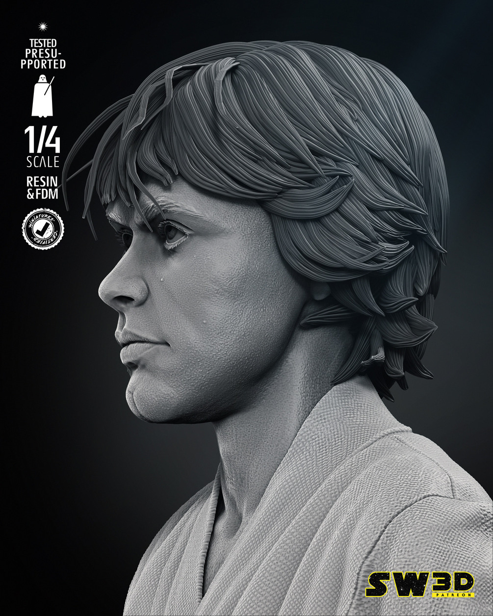 New Hope Luke Skywalker Bust Portrait 1/4 Scale STL tested and ready for 3D printing.
