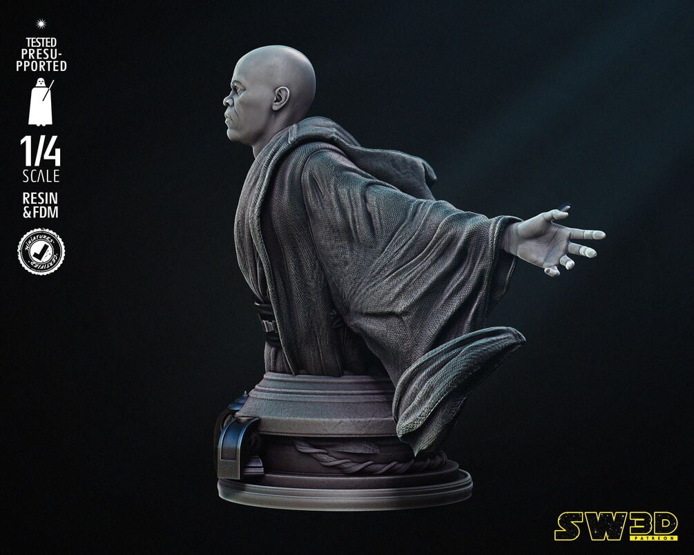 Mace Windu 2024 Bust 1/4 Scale STL tested and ready for 3D printing.