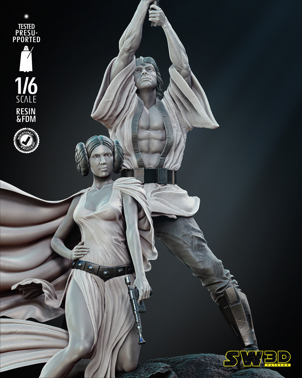 New Hope Luke and Leia Diorama 1/6 Scale STL FILES pre - supported for 1/6 scale and 1/12 scale