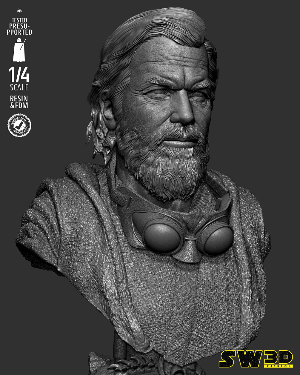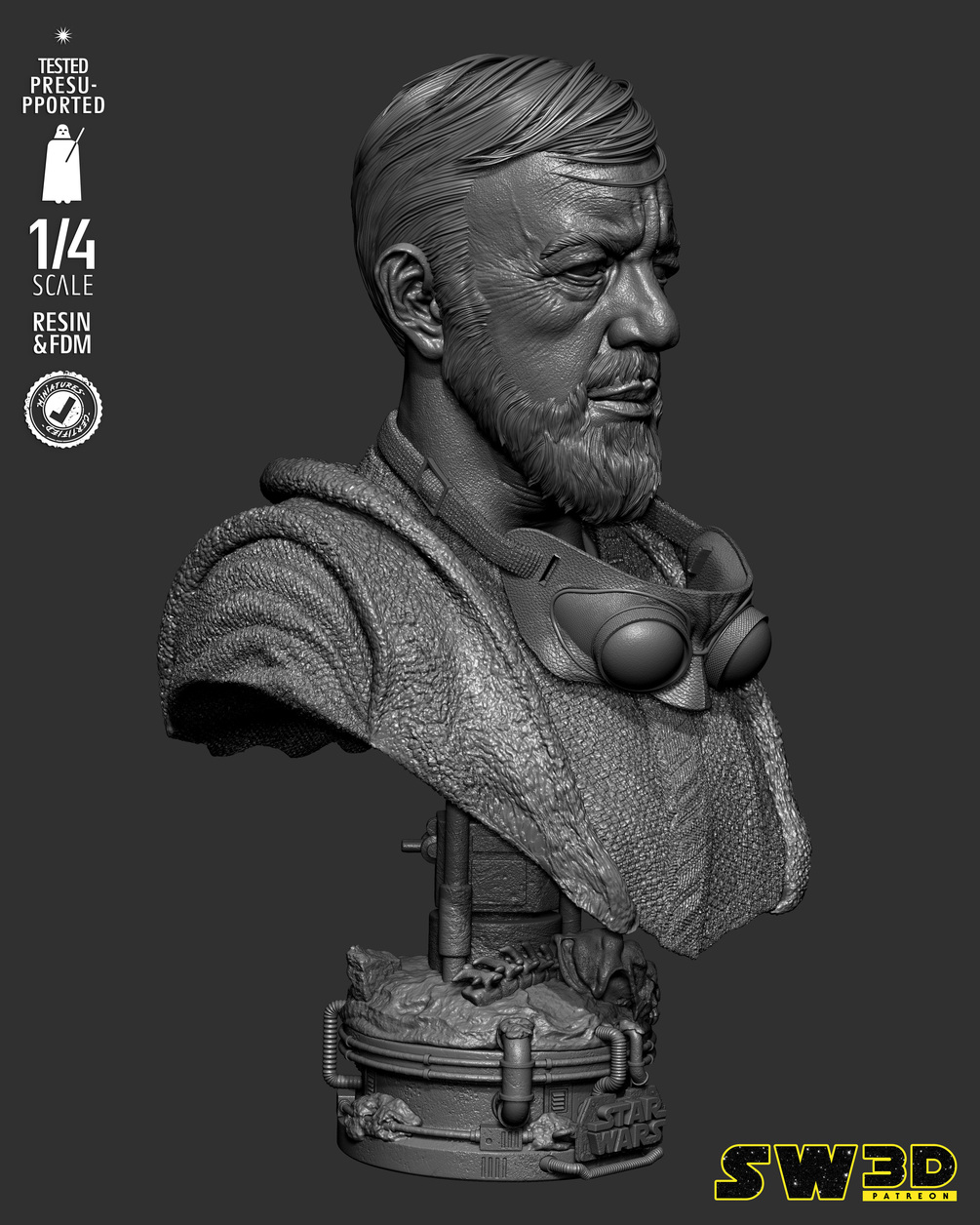 SW3D July 2025 Term Old Ben Kenobi Portrait Bust - Star Wars 3D Models - Tested and Ready for 3D printing