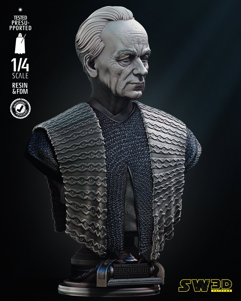 Palpatine Bust Portrait 1/4 Scale STL tested and ready for 3D printing.