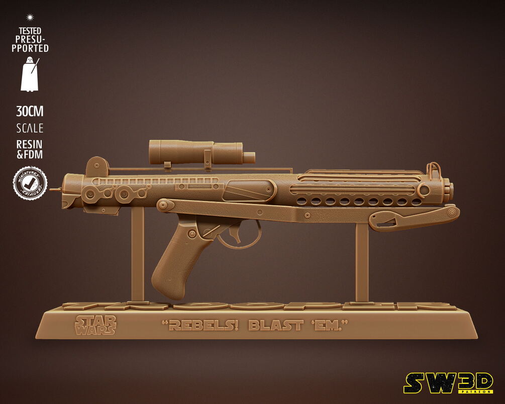 Rifle Blaster E-11 model. 1/1 (30 cm) Scale STL FILES pre - supported for 1/1 scale and 1/2 scale