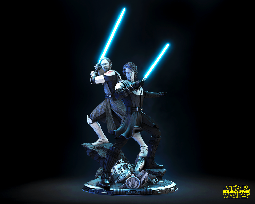 The Anakin and Obi Wan Diorama Sculpture 1/6 Scale STL FILES pre - supported for 1/6 scale, 1/10 scale.