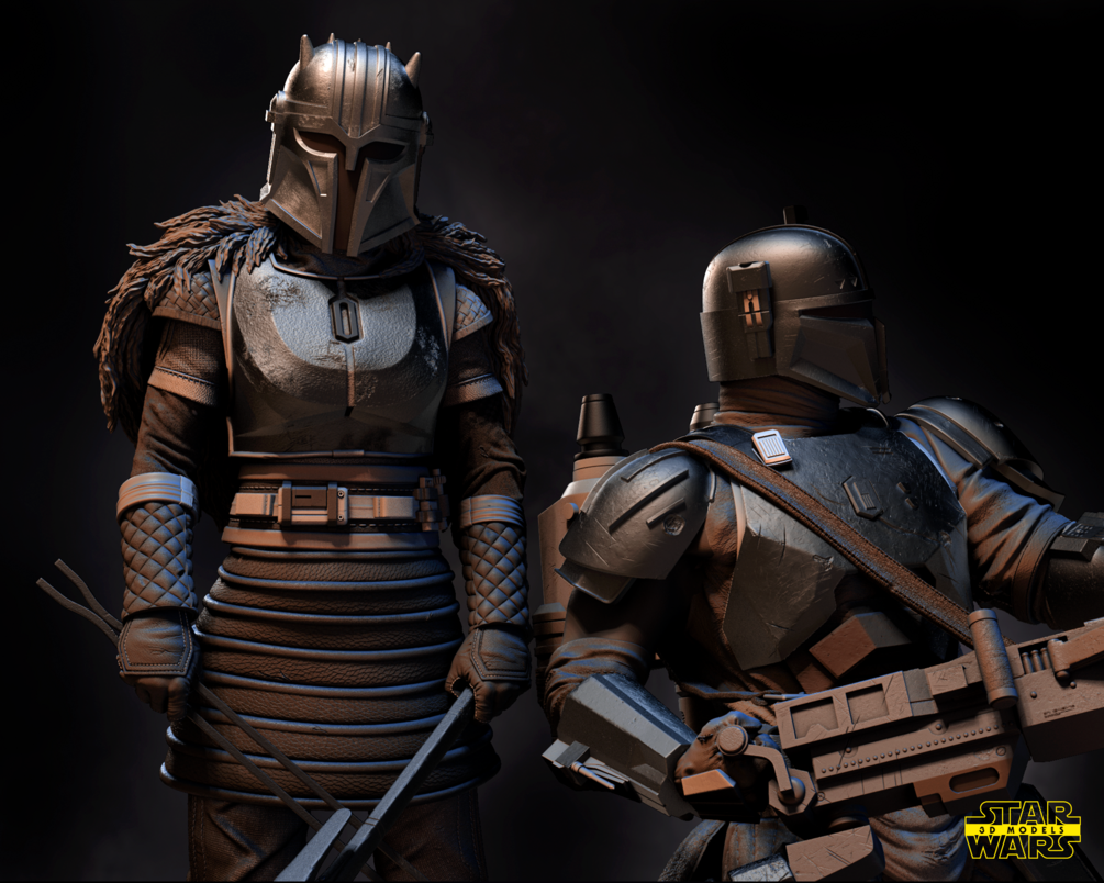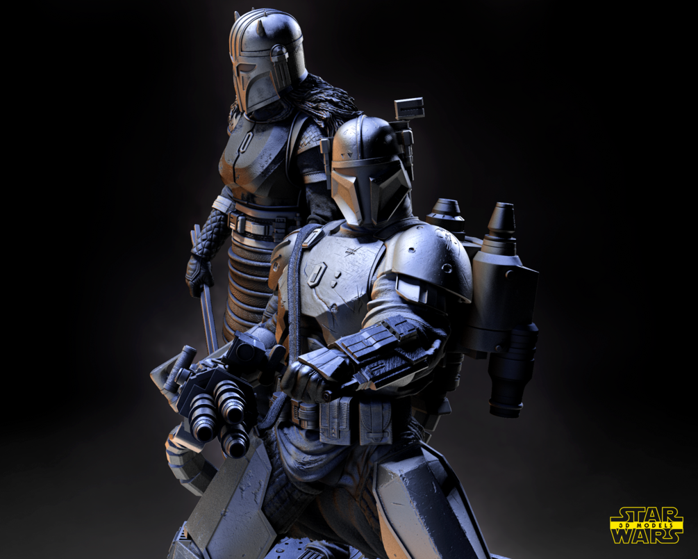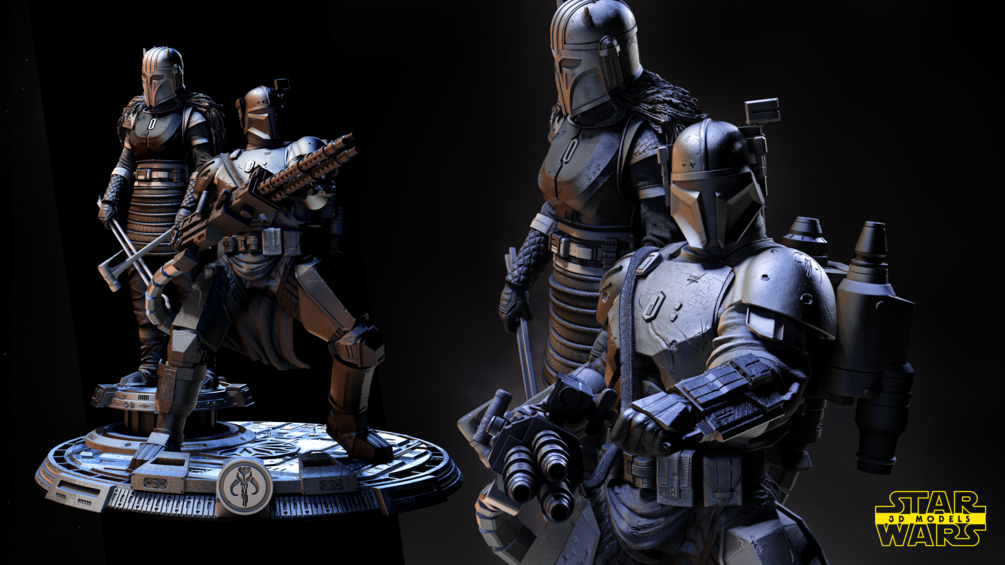 The Armorer and Paz Viszla Diorama Sculpture 1/6 Scale STL FILES pre - supported for 1/6 scale, 1/10 scale.