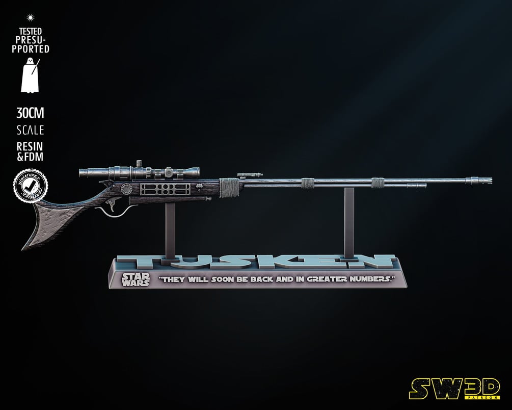 Tusken Cycler Rifle (30 cm) Scale STL FILES Non Supported and Pre Supported