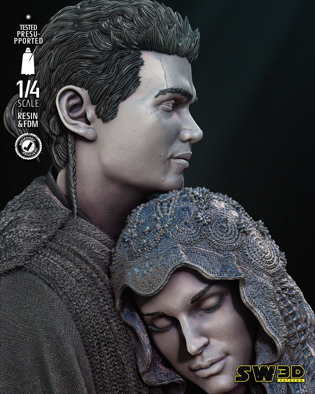 Young Anakin and Padme Bust Portrait 1/4 Scale STL FILES pre - supported for 1/4 scale and 1/8 scale