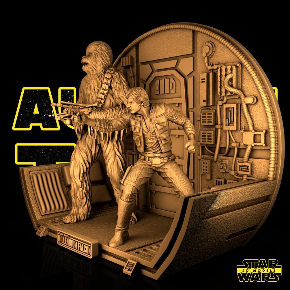 Star Wars 3D models are proud to present the Diorama Base of Han Solo And Chewbacca